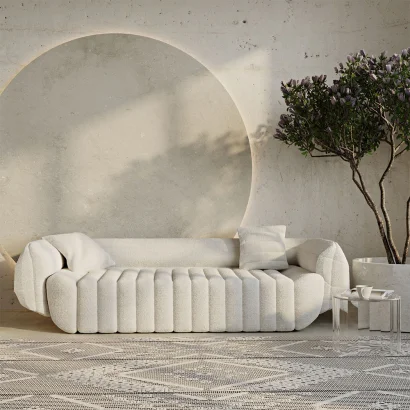 Curved Bouclé Fabric Sofa - 3/4 Seats - Souta