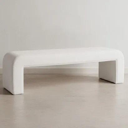 Bench Upholstered In White Bouclé Fabric - Modern Elegant Mi...