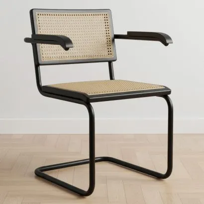 Dining Chair with Armrests - Vintage Design - Wood and Rattan - Bruna