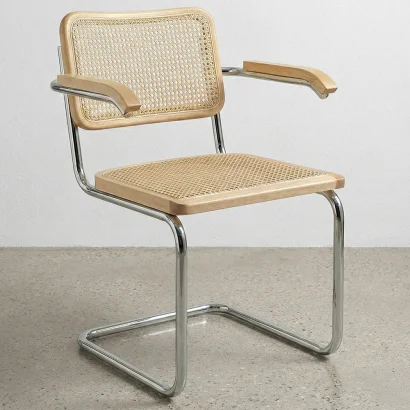 Dining Chair with Armrests - Vintage Design - Wood and Ratta...