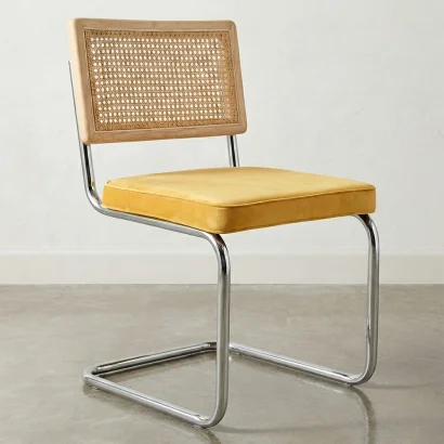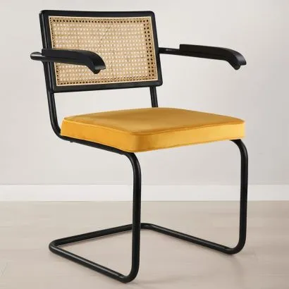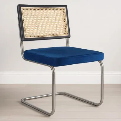 Dining Chair - Upholstered in Velvet - Wood & Rattan - Puila