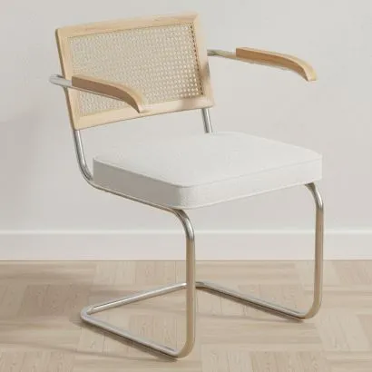 Dining Chair with Armrests - Upholstered in Bouclé Fabric - ...