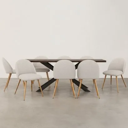 Pack Industrial Design Wooden Dining Table (200cm) & 8 Boucl...