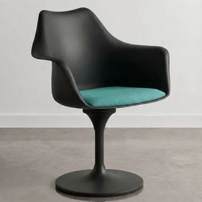 Dining Chair with Armrests - Black Swivel Chair - Tulipan